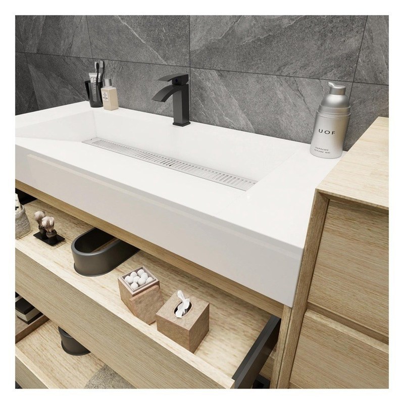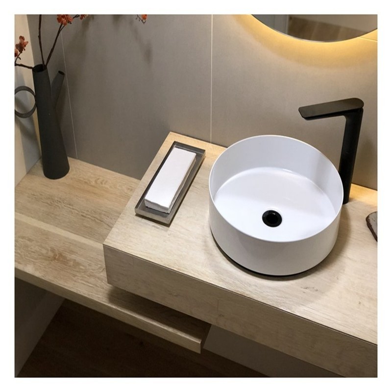 Современный стиль меламинная доска подъемник верхний бассейн ванная комната тщеславие с безручным дизайном 11