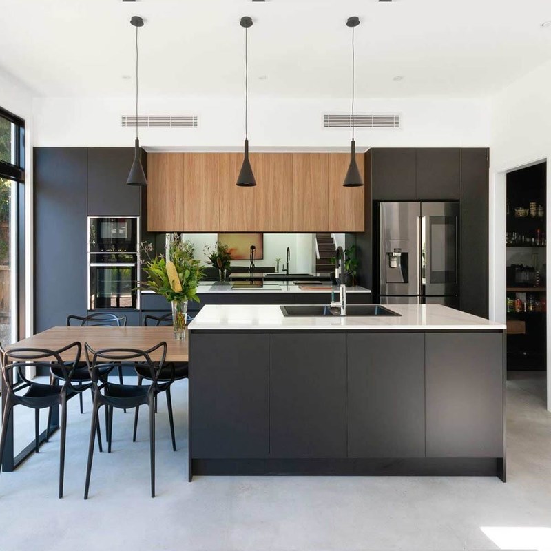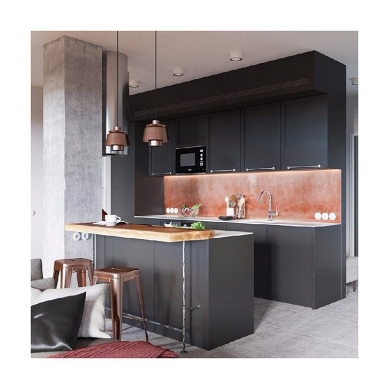 Японский стиль модульная черная кухня с островом кухни Меламин панель дверной материал 1