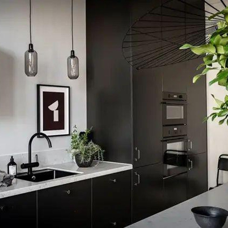 Японский стиль модульная черная кухня с островом кухни Меламин панель дверной материал 2