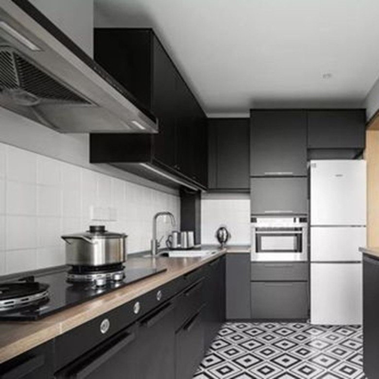 Японский стиль модульная черная кухня с островом кухни Меламин панель дверной материал 0